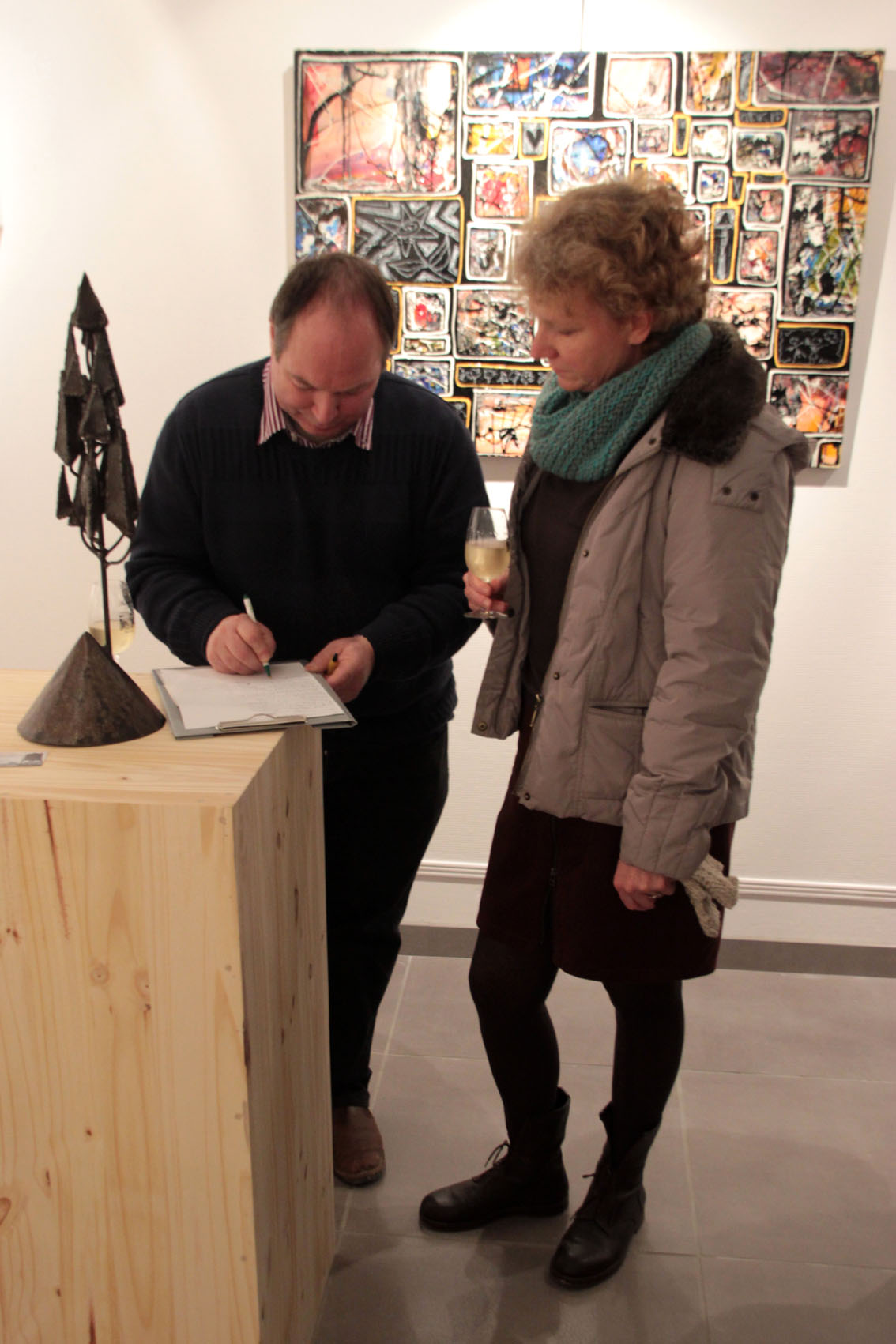 Un grand merci à Fabien Ansault, célèbre artiste de la région, pour ses photos de la soirée, ainsi qu’à madame Christiane Talfumière et son blog www.cristaldesaintmarc.com pour ses articles et ses encouragements. Karin Neumann, Géraldine Fasentieux, Alain Deheurles, Vincent Grandpierre et Jacob Diboum pour avoir accepté d’être les premiers invités de la galerie et donc d’en essuyer les plâtres, et bien évidement monsieur Christian Noorbergen, dont la réputation de critique d’art n’est plus à faire, qui a su charmer nos oreilles par ses mots si justes qui témoignent que « c’est par l’oeuvre d’art que l’homme, en lui, vit plus loin. » PATRICK DUPRESSOIR